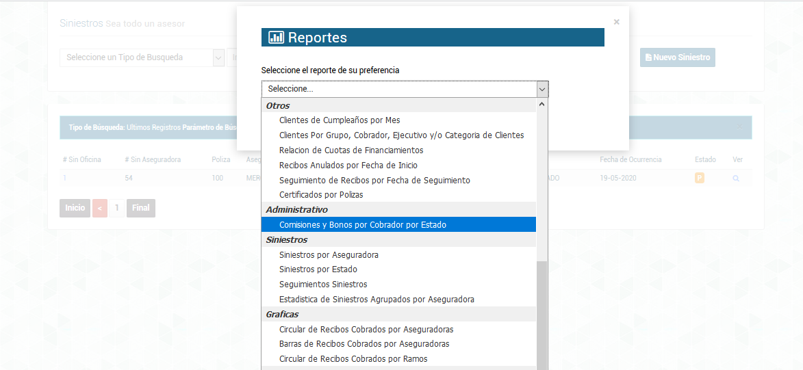 Obtenga Reportes de Renovaciones, Reportes de Recibos Pendientes, Cobrados, Comisiones y Bonos, Listado de Asegurados, Asi como Reportes de Siniestros