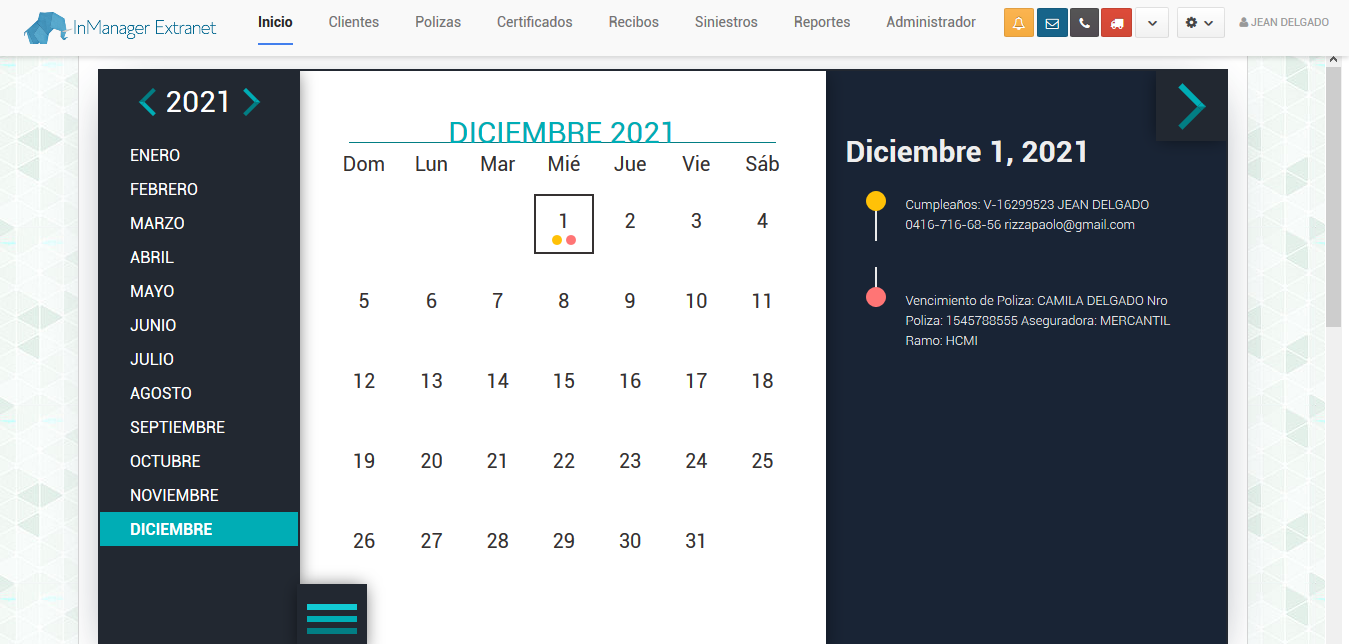 • Calendario de Eventos vinculado a su Cartera de Seguros, para que nada se le escape