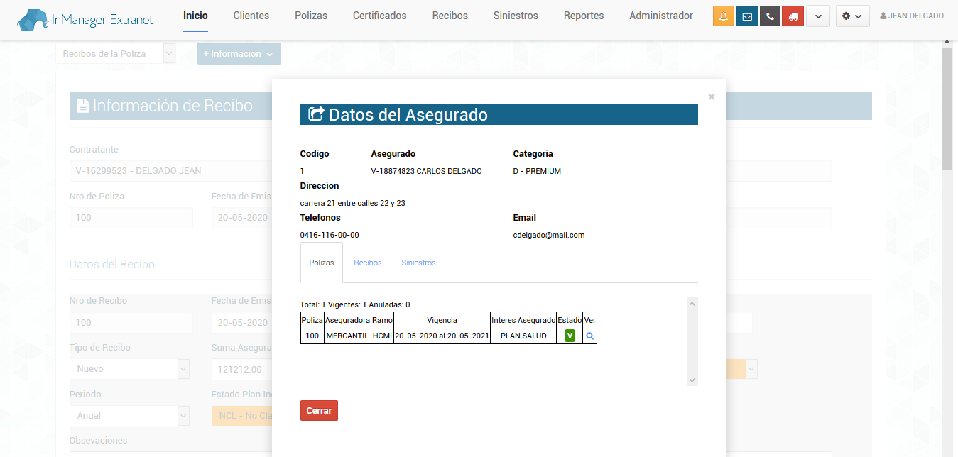 • Visión 360: Obtenga una vista panoramica de un asegurado y conozca las pólizas, certificados, recibos y siniestros que posee.