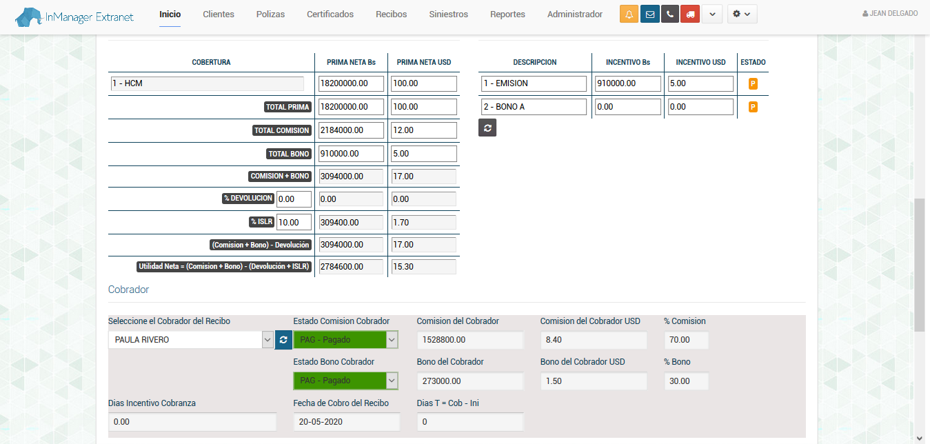 Vincule Poliza a un Recibo, registre Coberturas, Sumas Aseguradas, Primas Netas, obtenga Comisiones y Bonos de forma automatizada tanto para su empresa asi como sus Cobradores y Ejecutivos