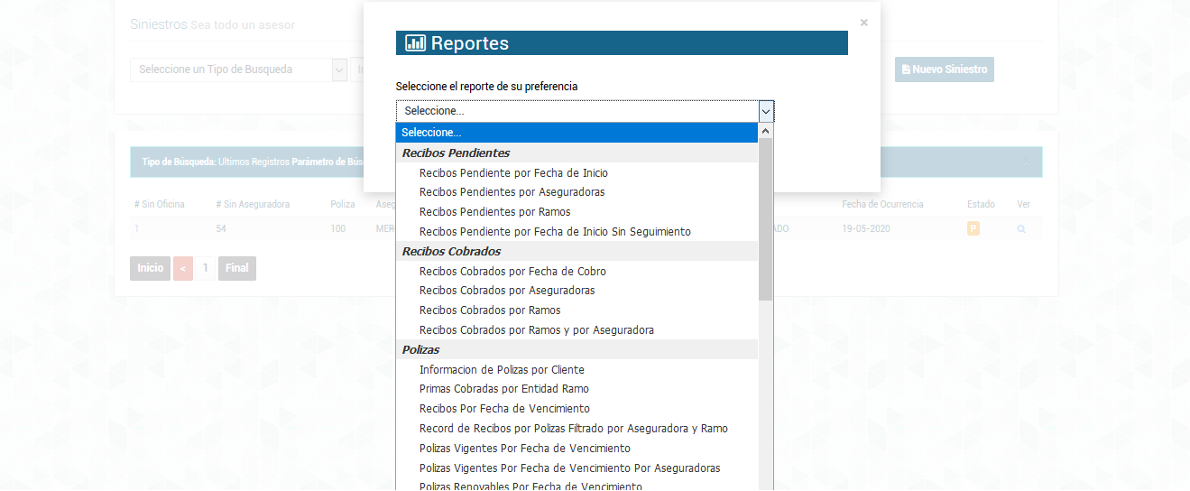 Obtenga Reportes de Renovaciones, Reportes de Recibos Pendientes, Cobrados, Comisiones y Bonos, Listado de Asegurados, Asi como Reportes de Siniestros